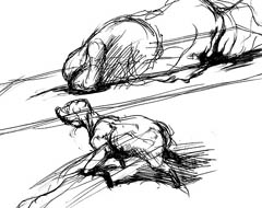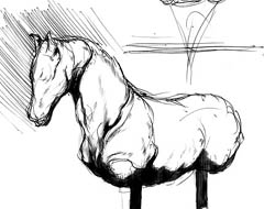 極初期の頃のラフ画です。形を変えて登場したりするものもありますが、どちらかというと、「3」全体の雰囲気を固める為に描いていたものです。その頃の私の中での世界観のイメージは、結構違ったものでした。殆ど、PS2では表現不可能な事ばかりだったのですが・・・。